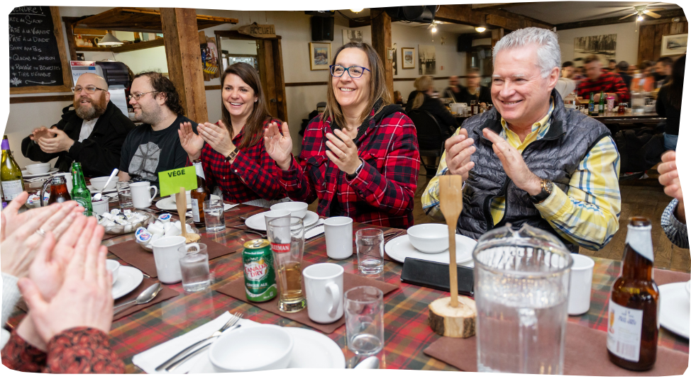 Chaque année, les cabanes à sucre ouvrent leurs portes principalement en mars et en avril pour célébrer le temps des sucres. À l’Érablière Le Chemin du Roy, nous vous accueillons dans une ambiance chaleureuse et festive pour vivre cette tradition comme il se doit : un repas copieux servi à volonté, de la musique traditionnelle et bien sûr… la célèbre tire sur neige.